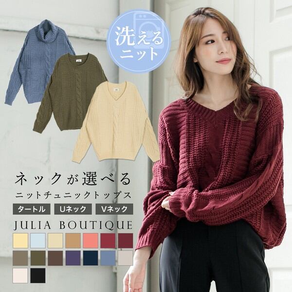 トップス ケーブル編みローゲージニットチュニック 15332 / ファッション レディースアパレル セーター・ニット