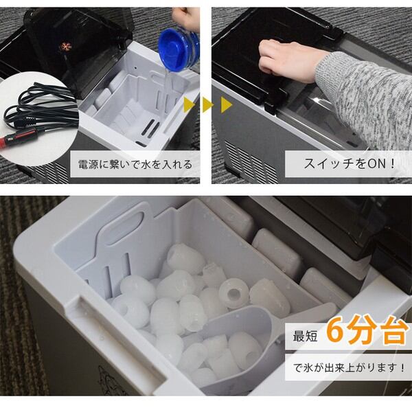 最短6分台!簡単!すぐに氷ができる車載用高速製氷機車のシガー電源に繋いで使用できる高速製氷機です