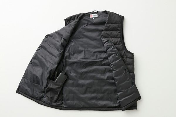 すばやく均一にあたたまるカーボンナノチューブヒーターを背面上部に使用したインナーベストとモバイルバッテリーのセットです