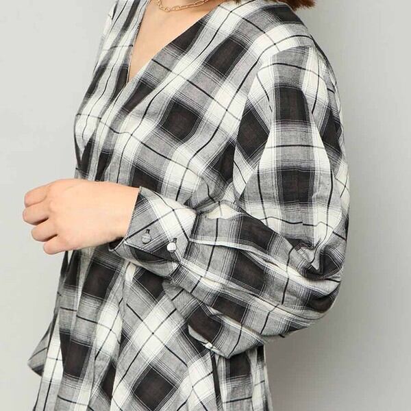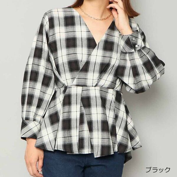 チェックカシュクールブラウス/2021秋冬 / ファッション レディースアパレル トップス シャツ・ブラウス