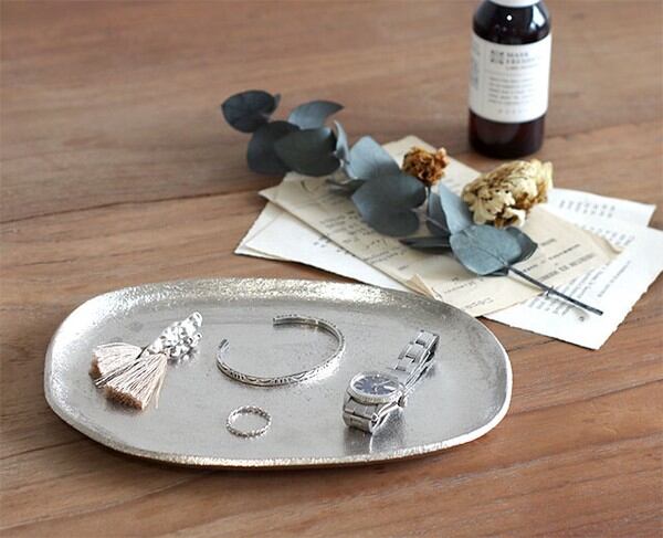 アルミ本来のシルバー色を活かしたハンドメイドのアルミトレイ
