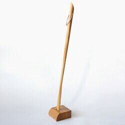 伊川彫刻店の三代目彫昌さんが一つずつ手作りでシンプルに仕上げた靴べらとベースのセットです