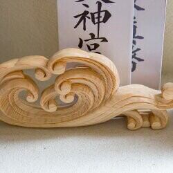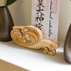 神社、仏閣の彫刻を手掛ける伊川彫刻店の三代目彫昌が彫刻刀だけで掘り上げた雲型お札立てです