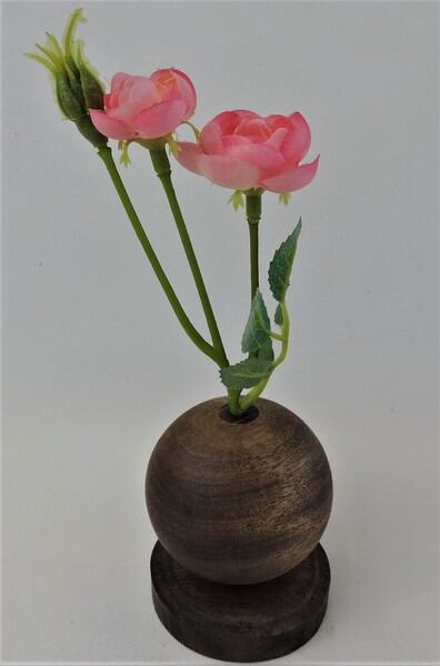手のひらサイズで無垢板を球体に加工した一輪挿しです