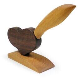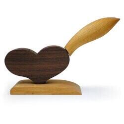 花梨(ハート)とケヤキ(台・持ち手)を使用しハートをモチーフにして三代目彫昌が手作りで制作した逸品です!デスクの上に置いて頂ければ癒しにもなりナイフを使用しないときは台に収納できますので安全です
