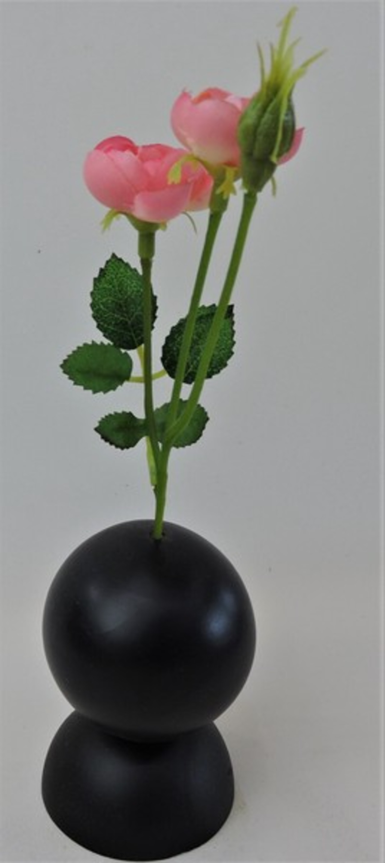 手のひらサイズで無垢板を球体に加工した一輪挿しです