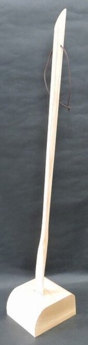 伊川彫刻店の三代目彫昌さんが一つずつ手作りでシンプルに仕上げた靴べらとベースのセットです