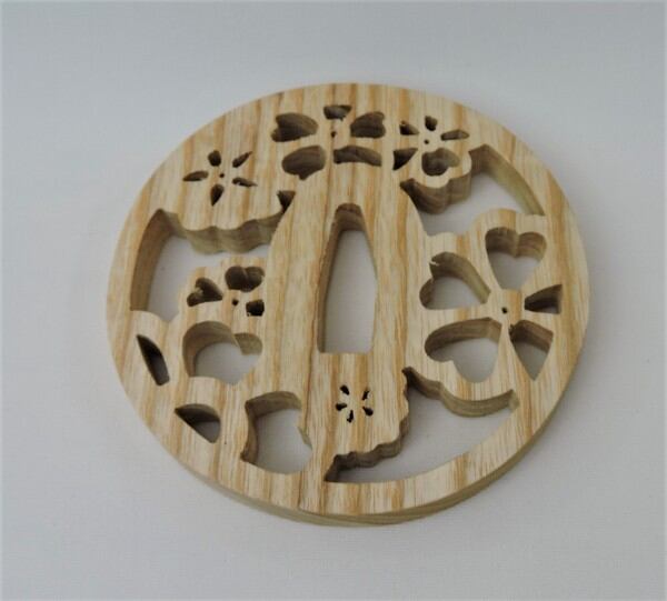 刀の鍔をイメージし、加工した木製コースターです