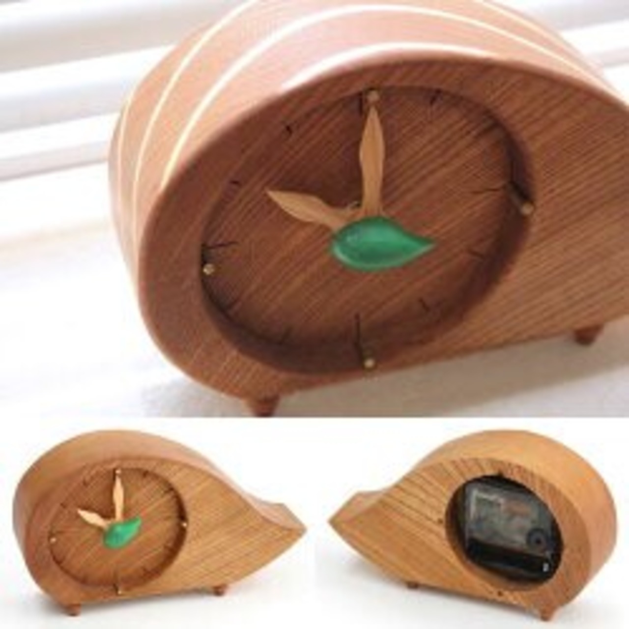 ケヤキの無垢材を 触れてみたくなるような個性的な形で置き時計にしました