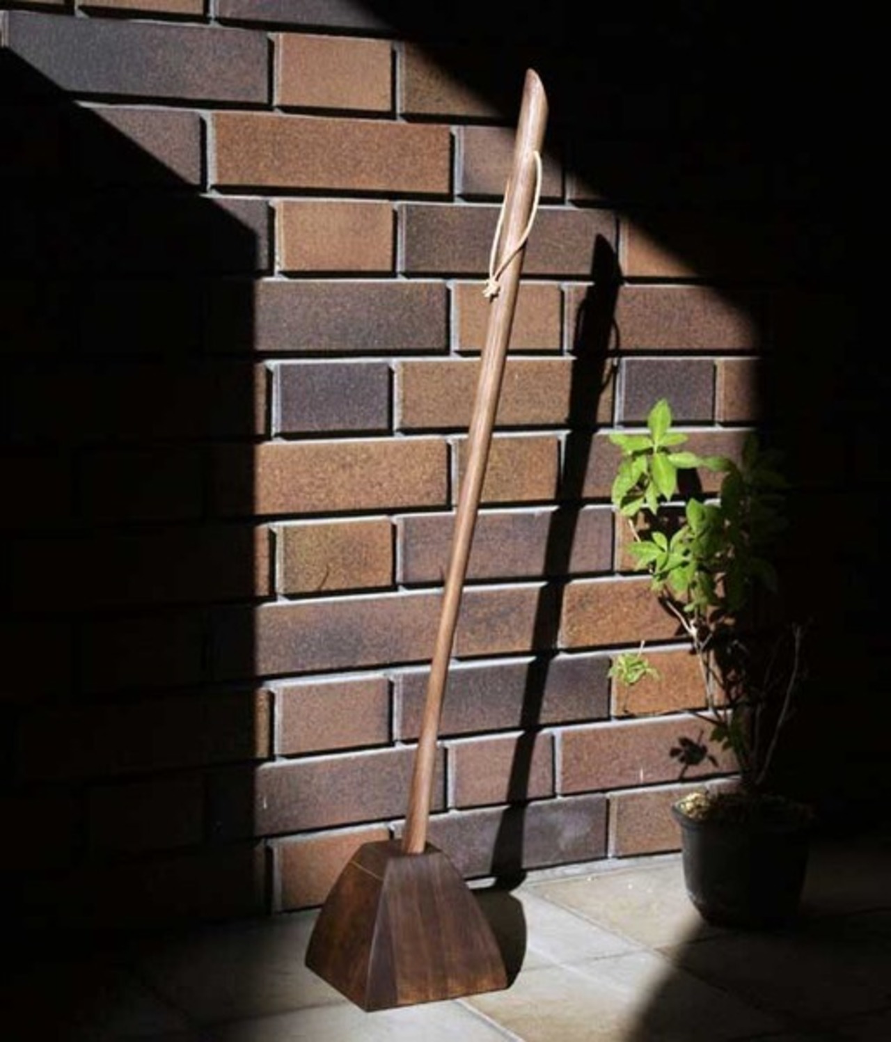 靴べら ロング 木製 ウォールナット台形木製スタンド・革ひも付き / 生活雑貨 手芸・クラフト用品