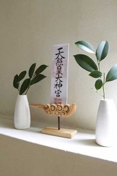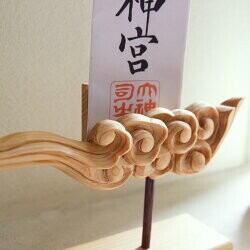 三代目彫昌が彫った厳かなスタンドタイプ雲型お札立て
