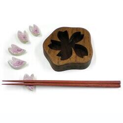 陶器と木のコラボ商品です!桜の花ビラをイメージした陶器の箸置きを木の枠に収納していますので使用しないときはテーブルのワンポイントとしてオシャレに演出します