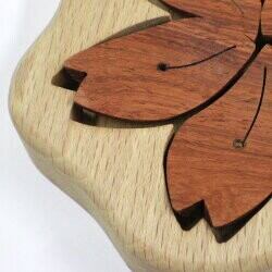 桜の花びらをモチーフにした箸置きです!毎日の食卓を華やかに彩る箸置きとして桜の花びらをモチーフにして花梨材で箸置きを制作しタモ・ナラの枠に収納しました自然素材で安心!箸置きは花梨で塗装にはお箸にも使用できる浸透性ウレタン塗料を使用して枠はタモを使用しオイルで仕上げているので体にも安心です