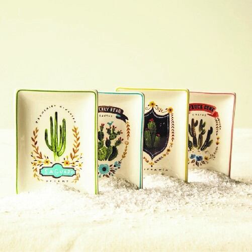 サボテンをモチーフにしたポップデなザインの陶器製の小皿
