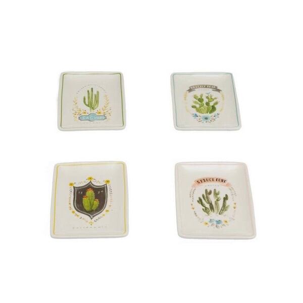 Creative Co-Op Home Angelaデザイン スクエアディッシュ 4種セットAngela Stoneware Dish Cactus / 生活雑貨 食器・キッチン 皿 小皿