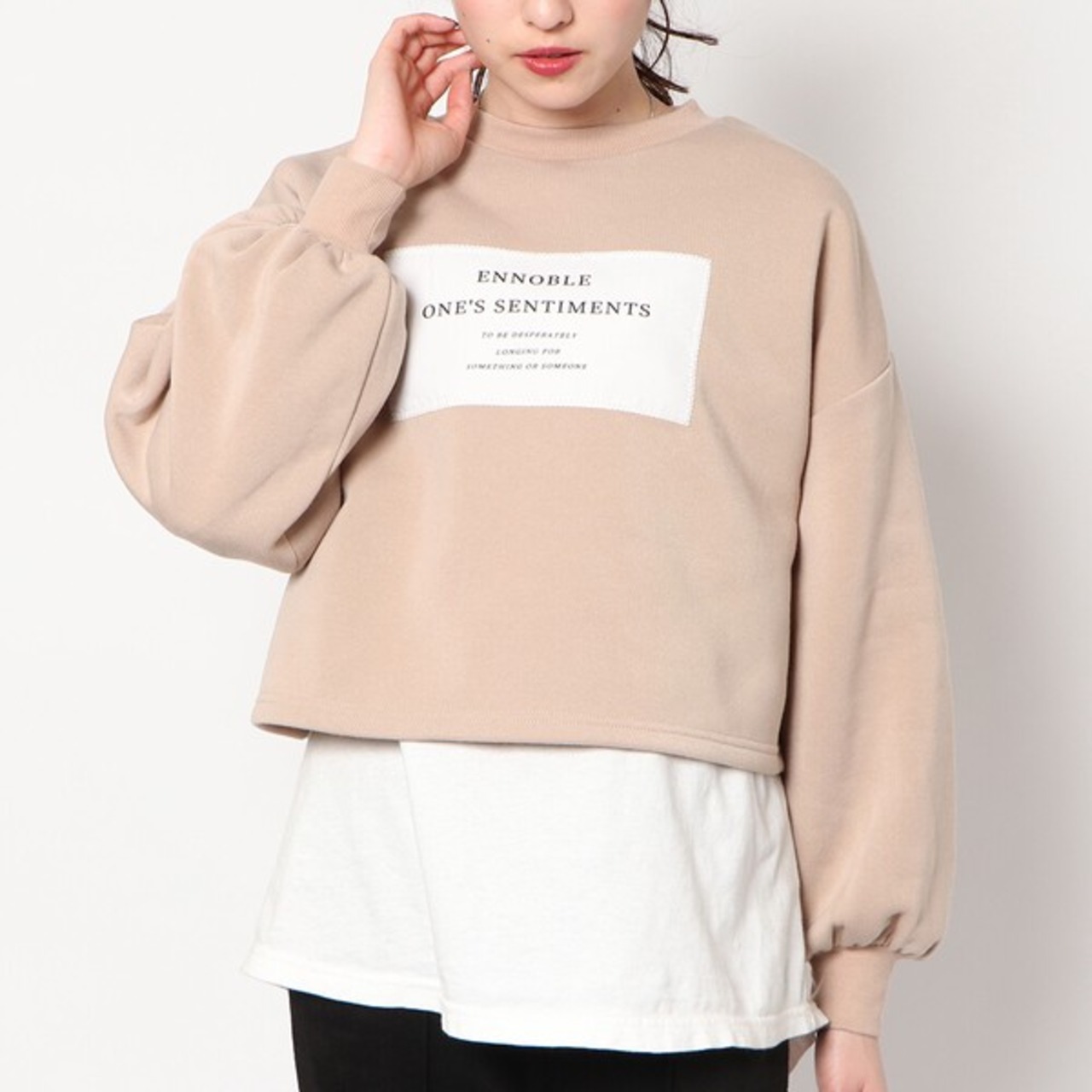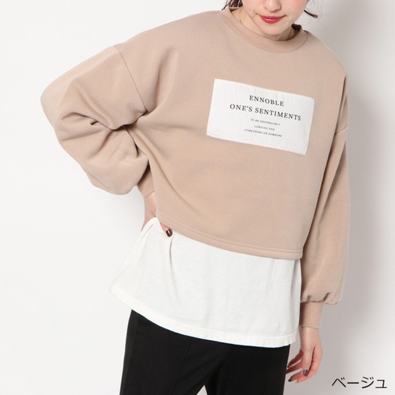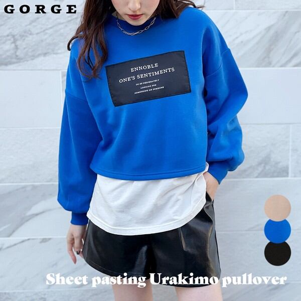 シンプルルックの貼り付けデザインが普段使い楽ちんなシート貼り付け裏起毛プルオーバーが登場★