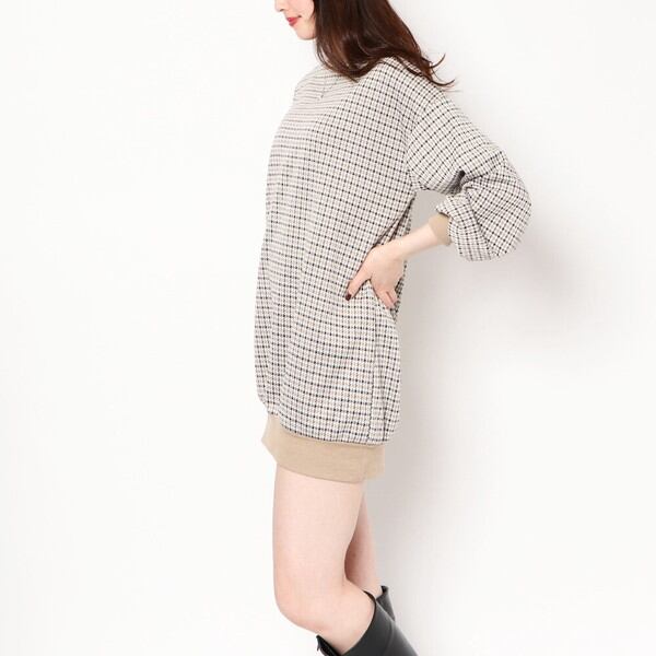 ミニワンピなのでボトムスを合わせてもウエストに引っ掛けるようにアクセサリーベルトをするのもオススメ◎ジャガード生地でしっかりめな風合いを感じられます♪首元しっかりガードで抜けがないのが清楚で控えめな印象を作ります☆