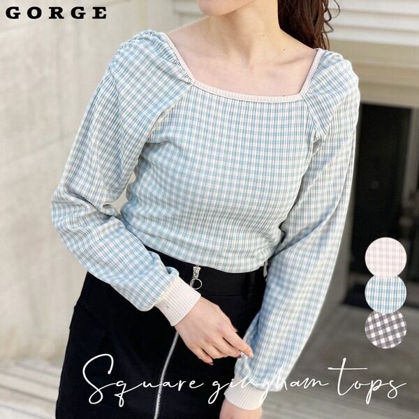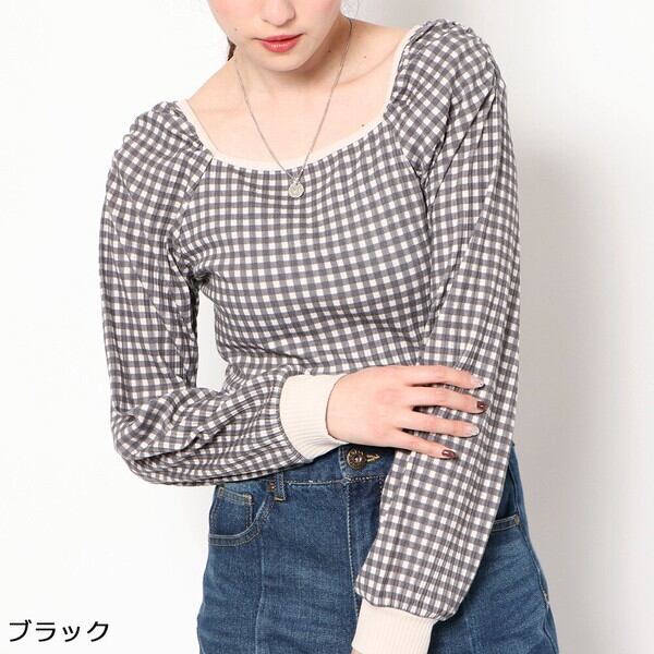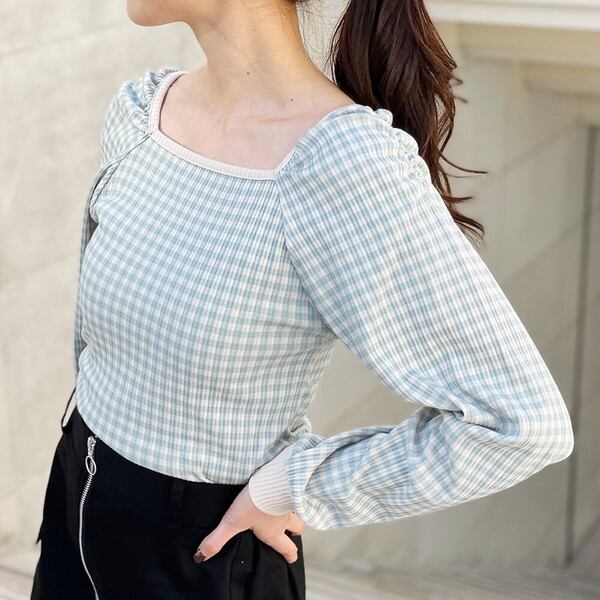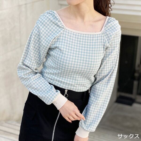 スクエアギンガムトップス「2022新作」 / ファッション レディースアパレル Tシャツ・カットソー