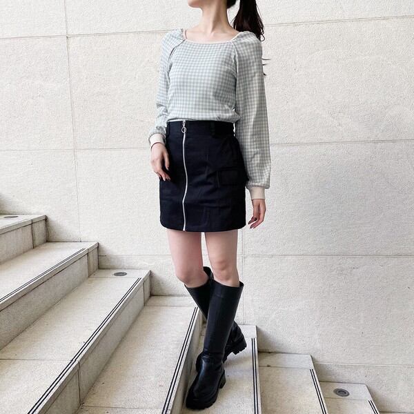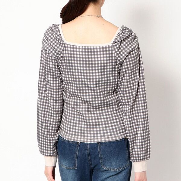 スクエアネックがデコルテをキレイにみせてくれる、大人可愛いが叶うギンガムチェックトップス!