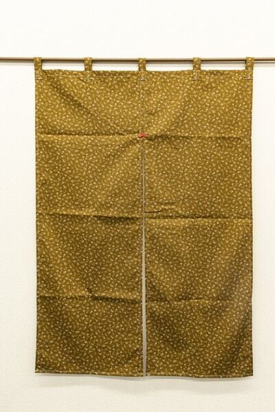 在庫限り 綿100% のれん 目隠し 桜・麻の葉 南瓜色 幅85×丈120cm 日本製 チチ付 和風 / 家具・インテリア ファブリック・敷物
