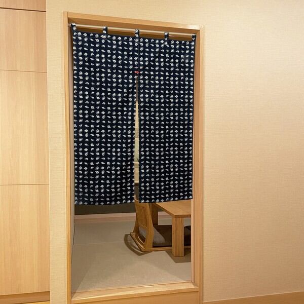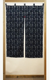 綿100% のれん 目隠し さかな 幅85×丈120cm 日本製 チチ付 和風 先染め / 家具・インテリア ファブリック・敷物