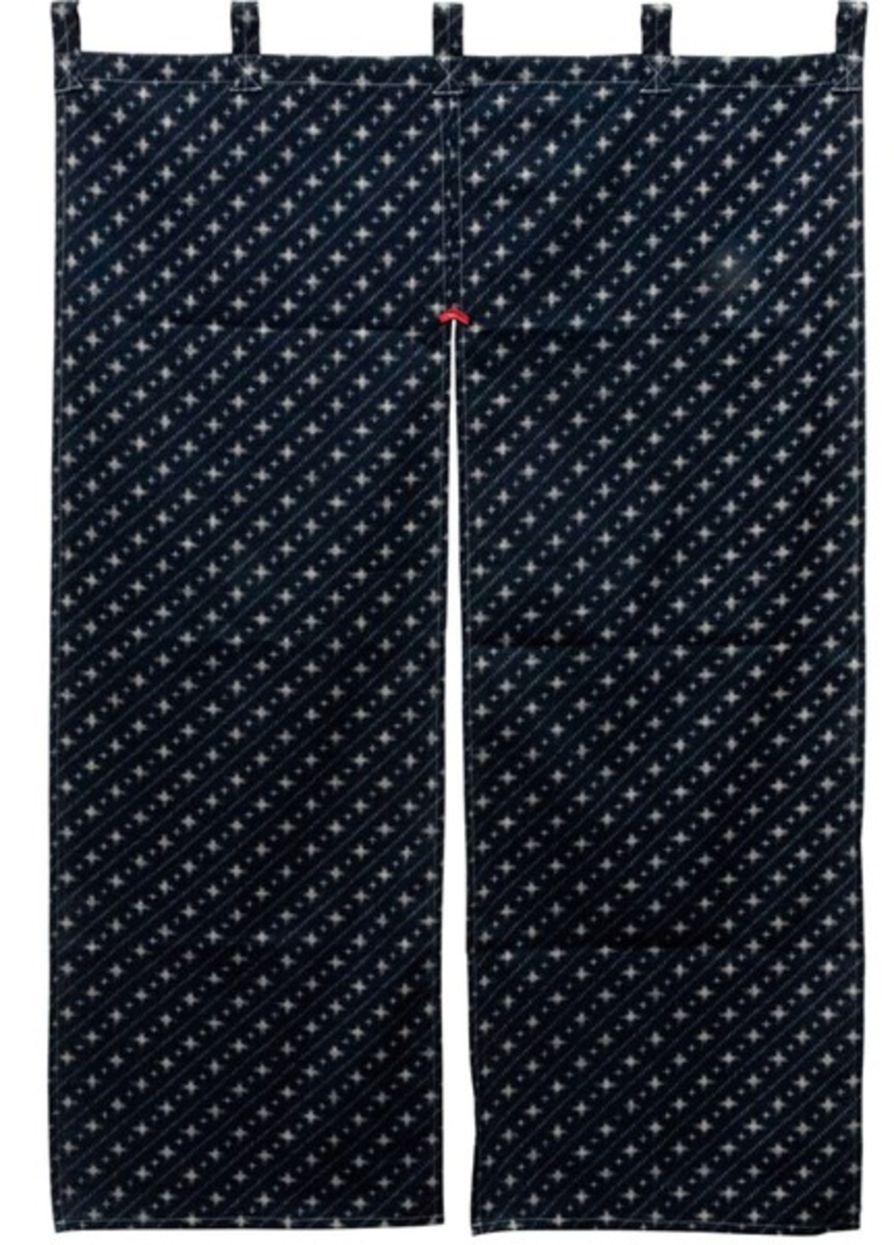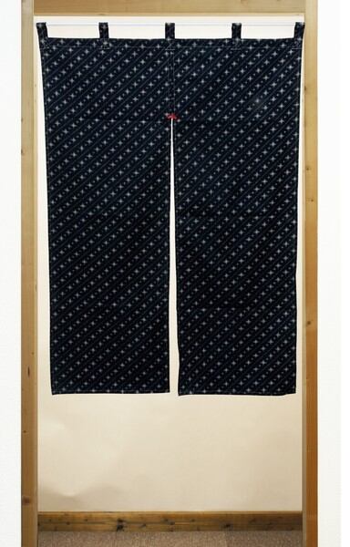 綿100% のれん 目隠し 斜並十字 幅85×丈120cm 日本製 チチ付 和風 先染め / 家具・インテリア ファブリック・敷物