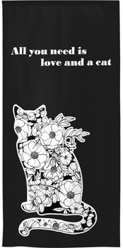 のれん 受注生産 目隠し 72X150cm「love_and_a_cat BK」 日本製 デザイナーズアート / 家具・インテリア ファブリック・敷物