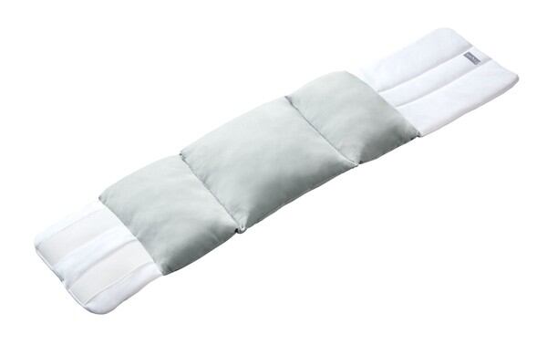 ●面ファスナーでズレにくい、〈サイド〉横腰を優しく支えます、〈中央〉腰と敷具を埋め支えます