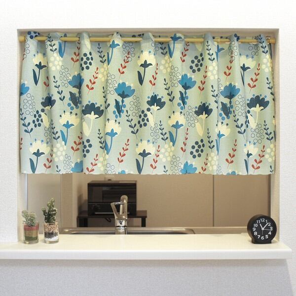 受注生産カフェカーテン 「Flower_Dot」120x45cm 日本製 デザイナーズアート / 家具・インテリア ファブリック・敷物 カーテン・ブラインド