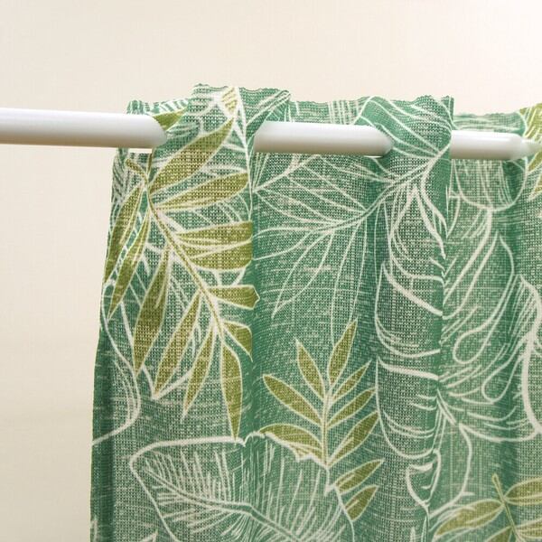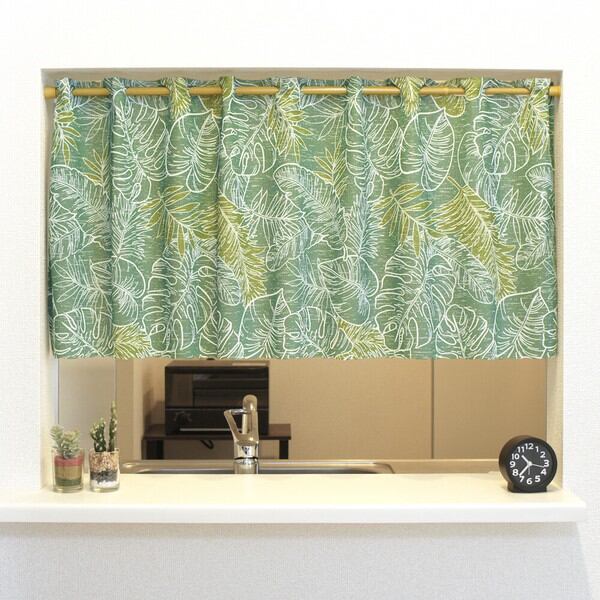 受注生産カフェカーテン 「モンステラ GN」120x45cm 日本製 ハワイアン / 家具・インテリア ファブリック・敷物 カーテン・ブラインド