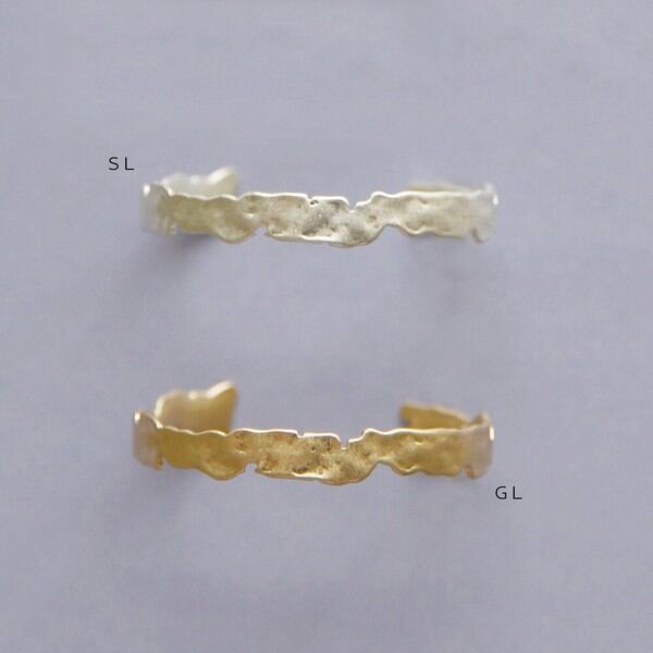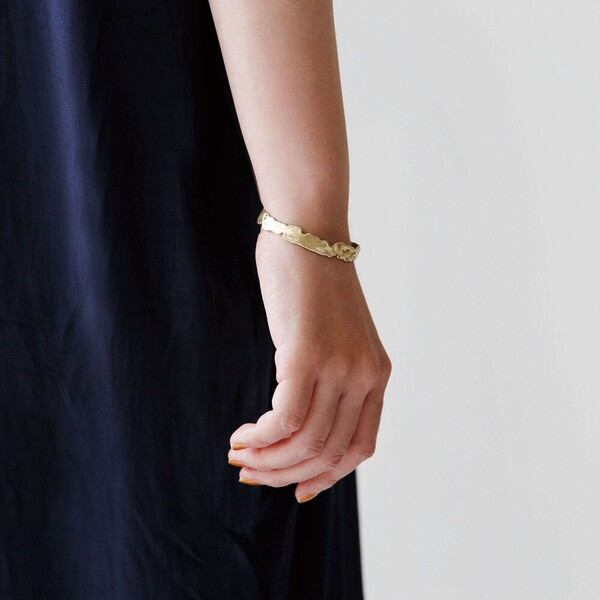 金属を叩いて自然に出来たエッジのようなデザインのブレスレットです