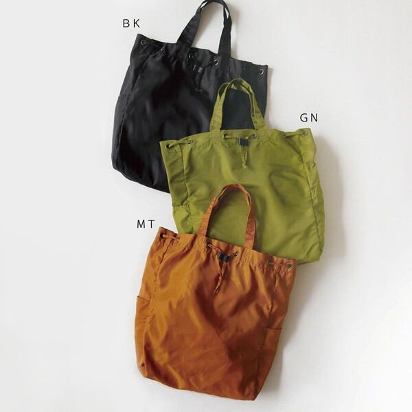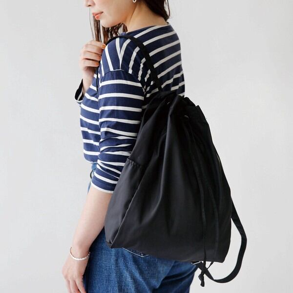 ドローコードをキュッと締めると巾着型シルエットにになります