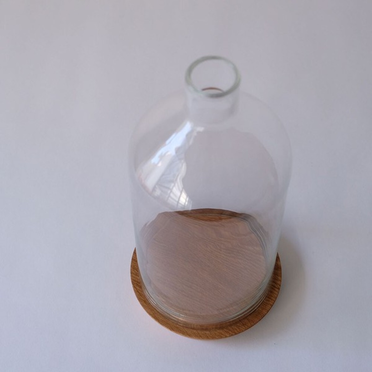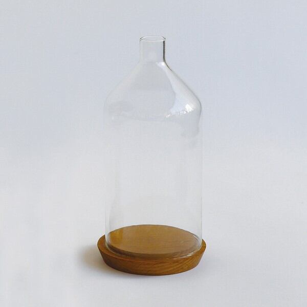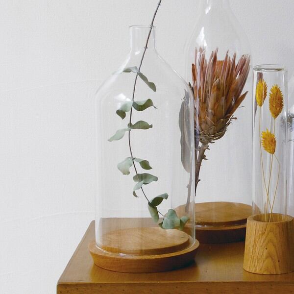 ボトル型のディスプレイドームは、逆さまにしたドライフラワーも茎の部分を逃がしてバランス良くディスプレイできます