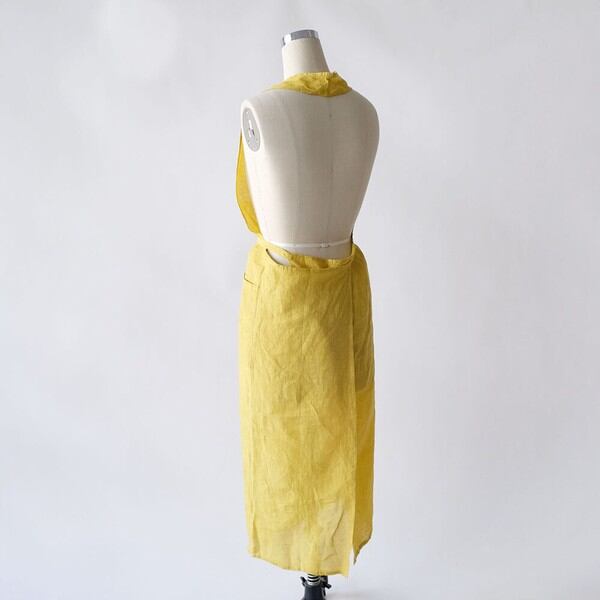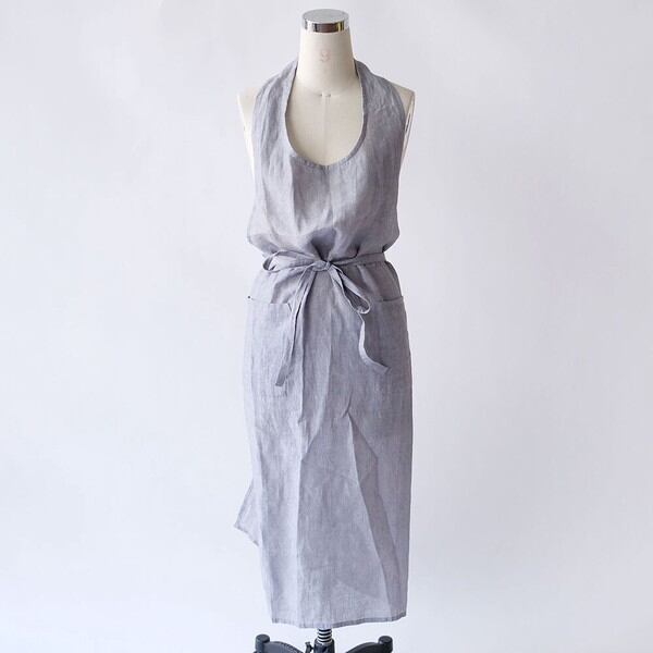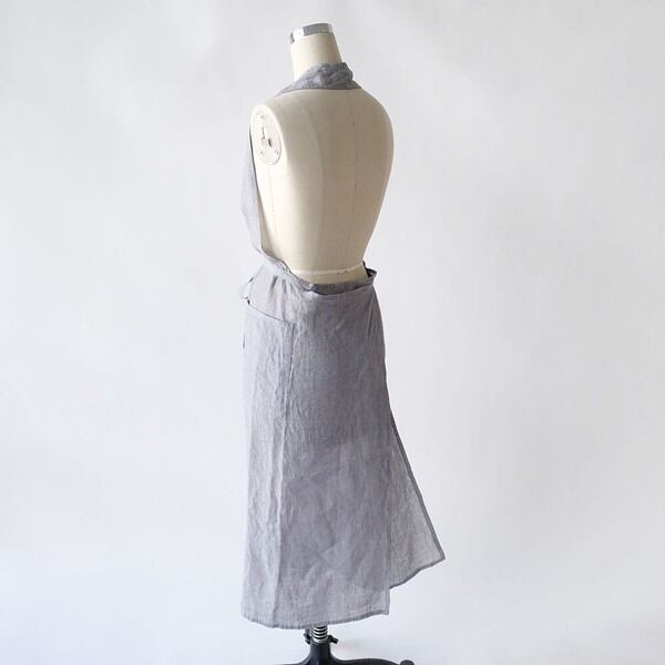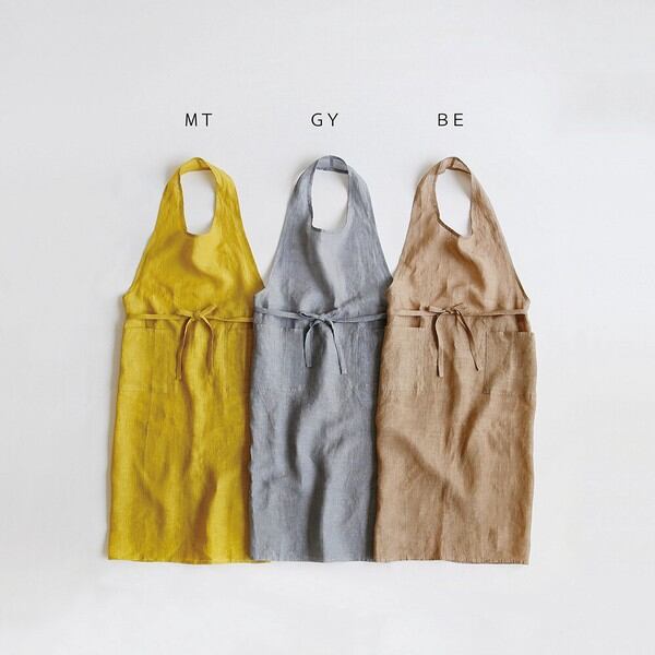 女性らしいカーヴィなホルターデザインのエプロンは、ボトムが広がりすぎず、かわいらしくなりすぎない大人なデザインです