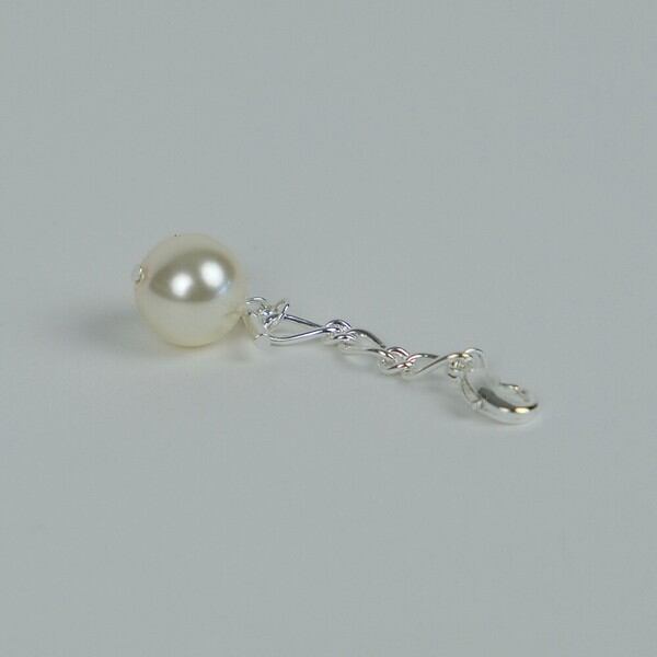 パールとカーブさせた楕円形のチェーンとの組み合わせによって、ゆらゆらと揺れ動くモチーフがトレンド感と女性らしさを融合したデザインのマスク紐に付けるマスクチャームです