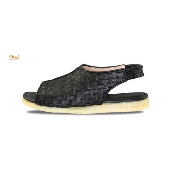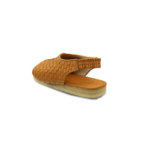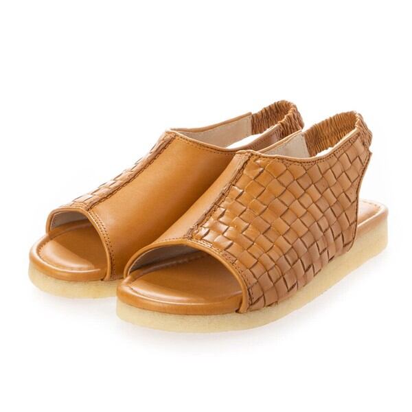 パイをモチーフにしたサンダル「Pai(パイ) 」アッパーの外側半分を、革自体を細かく編み込む事で、パイ生地の凹凸とふっくら感を表現