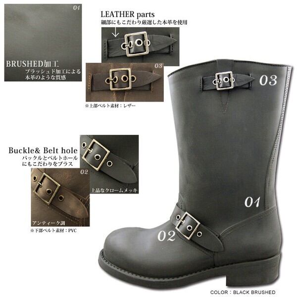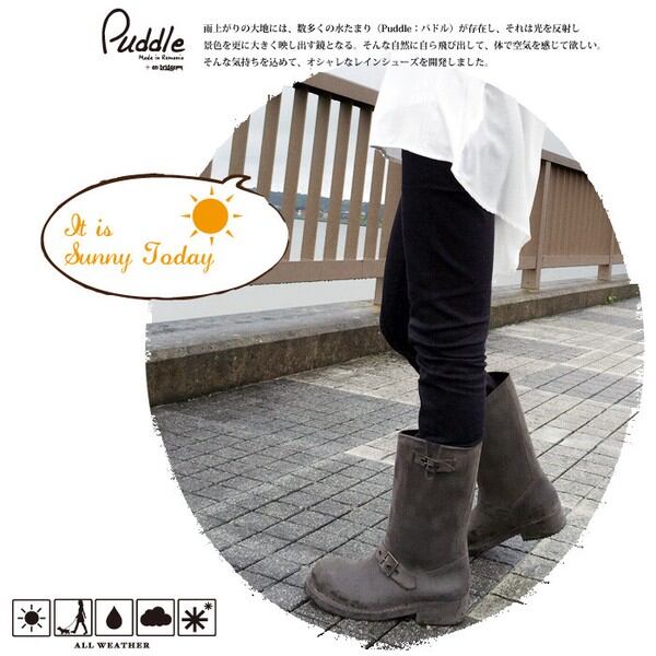 【Puddle】パドル☆【晴れの日にもは履きたくなる】エンジニアブーツ♪♪♪【MADE IN ROMANIA】ヨーロピアンデザインならではの洗練されたフォルムを足元にプラス BRUSHED加工(ブラッシュド加工)による本革のような質感は、 レインブーツであることを忘れてしまいそう・ブラッシュド加工による本革のような質感・バックルとベルトホールにこだわりをプラス