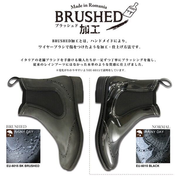 Puddle パドル ブラッシュド加工による本革のような質感のレインシューズ EU-6013 / ファッション 靴
