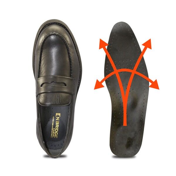 【アーチサポートインソール「enbridge」で正しい姿勢と快適な履き心地を】・ビジネスカジュアルシューズ用に開発されたアーチサポートインソール搭載・踵から土踏まずまで硬質のアーチ素材を使用し、三点アーチをより的確にサポートします