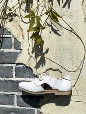 ベーグルをイメージして作った「Bagel(ベーグル)」大きく中央に開いた穴がベーグルのデザインの特徴に靴のサイドを大きくくり抜いた爽快感のあるパンプスシューズ