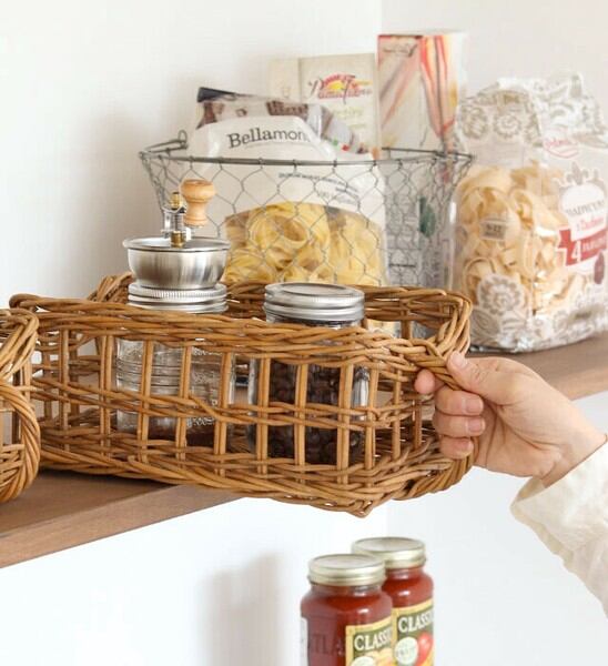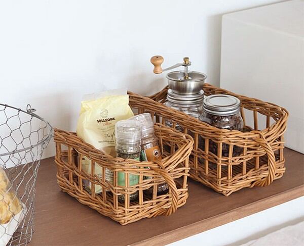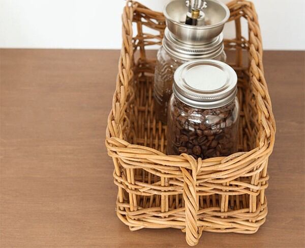 皮付きラタンの風合いを生かしたアラログのキッチンストッカーバスケット