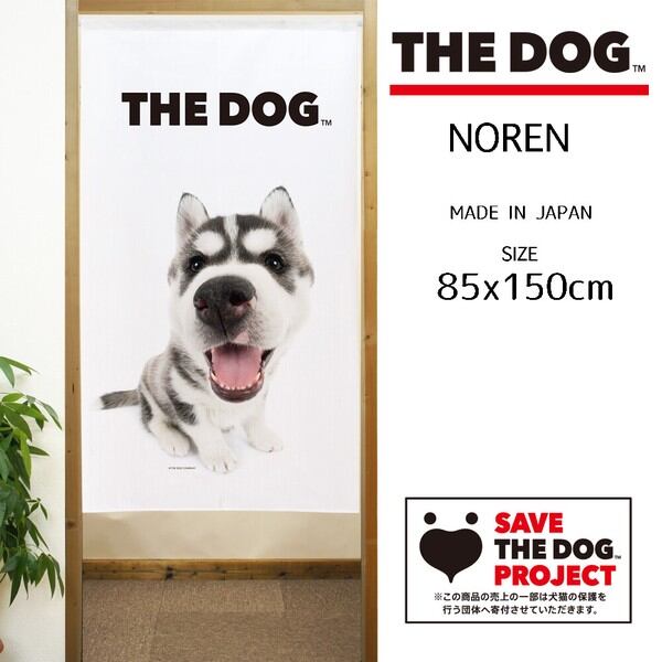 のれん 受注生産 目隠し THE_DOG シベリアンハスキー ブラック&ホワイト 幅85×丈150cm 日本製 / 家具・インテリア ファブリック・敷物
