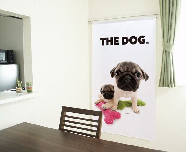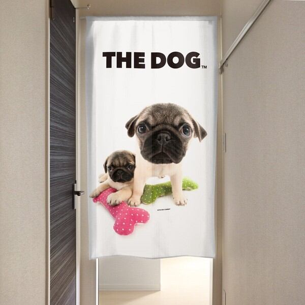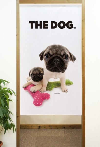 のれん 受注生産 目隠し THE_DOG パグ 2匹 幅85×丈150cm 日本製 / 家具・インテリア ファブリック・敷物