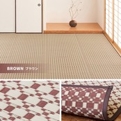 PP柄上敷き い草風花ござ 水洗いOK 「ルイス」 ブラウン / 家具・インテリア ファブリック・敷物 カーペット・絨毯