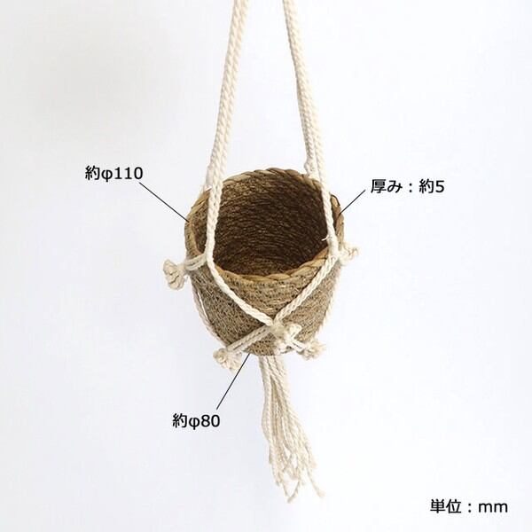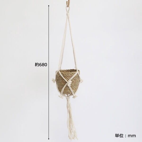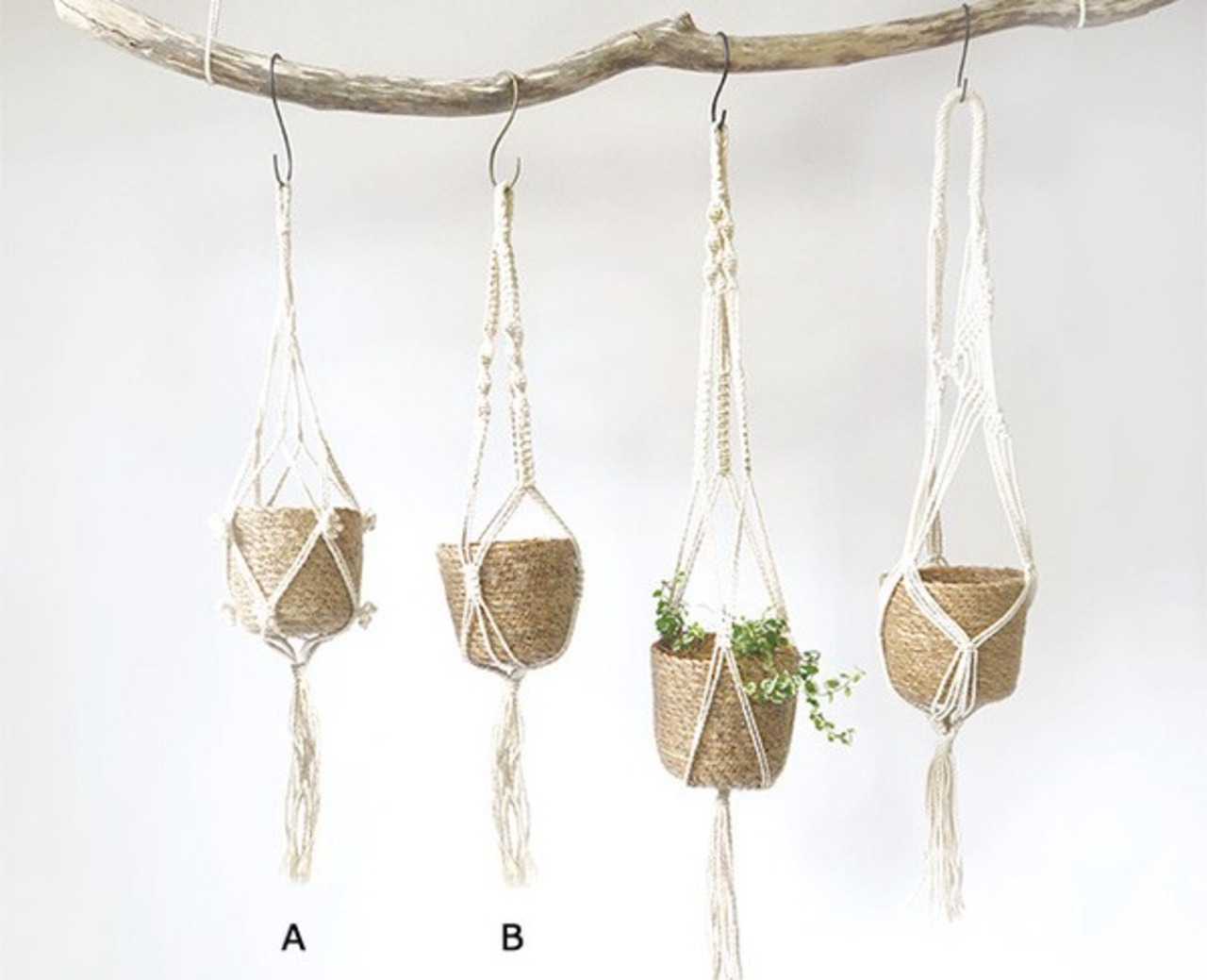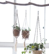 コットンロープをマクラメ編で編み上げたプラントハンガーと