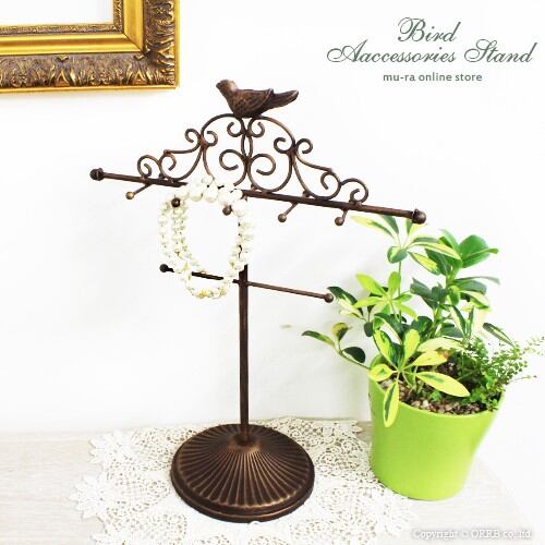 くるりとしたアイアンがかわいい小鳥がついたアクセサリースタンド