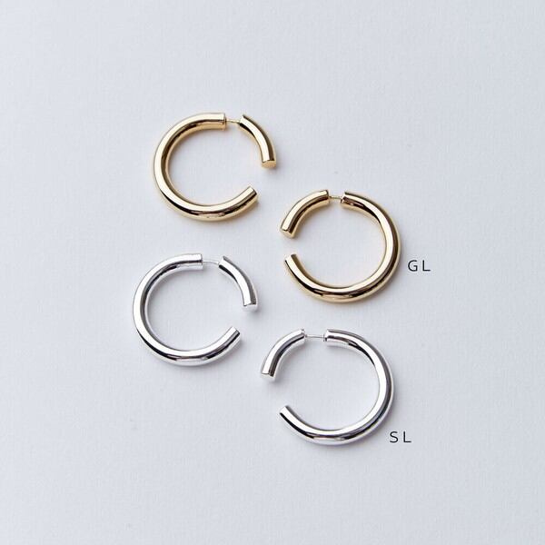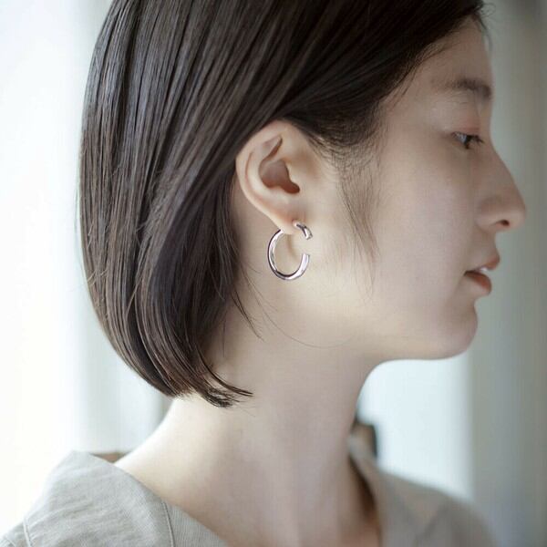 キャッチを装着する事で、フープ型のデザインになるピアスです