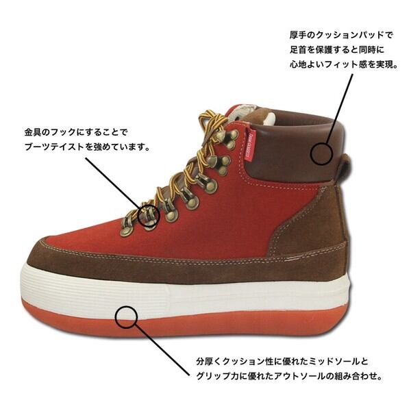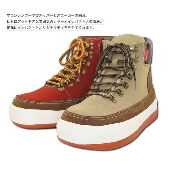 レトロアウトドアな雰囲気のマウンテブーツにボリューミーなスニーカーソールをドッキング