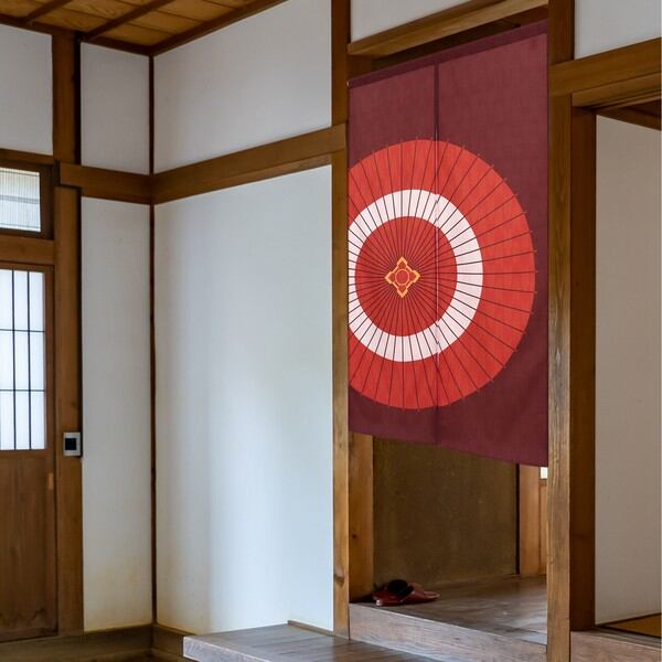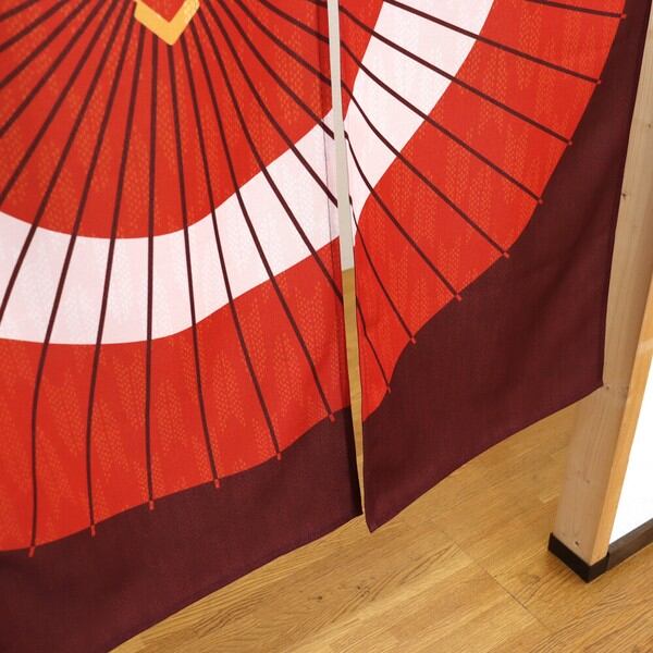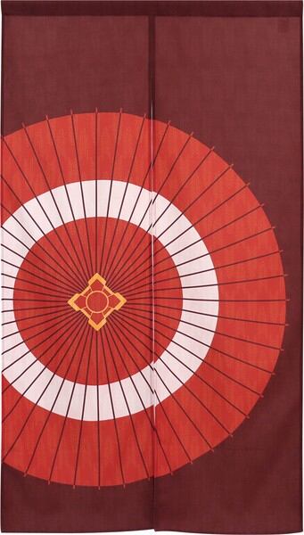 のれん 目隠し 85x150cm「 和傘に矢絣」厚手オックス 和柄/和風 / 家具・インテリア ファブリック・敷物