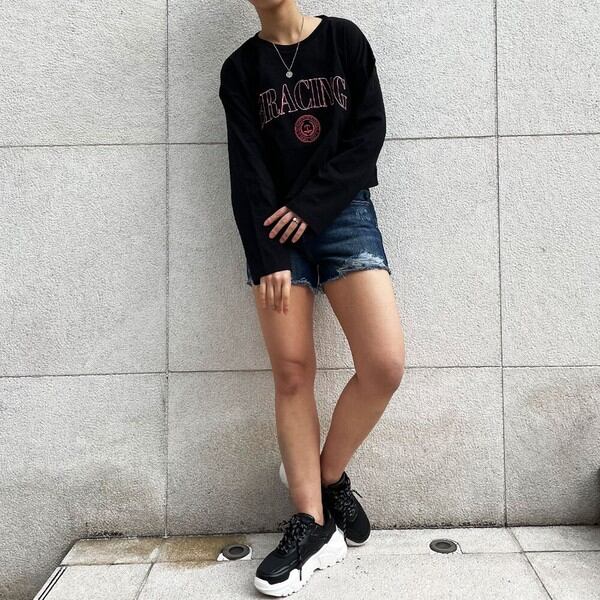 短丈なので全体のスタイルアップや脚長効果が期待できます◎冬はプラス羽織物から春は1枚着と、シーズン長く着れます♪ジョガーパンツに合わせてストリートカジュアルなコーデが可能です